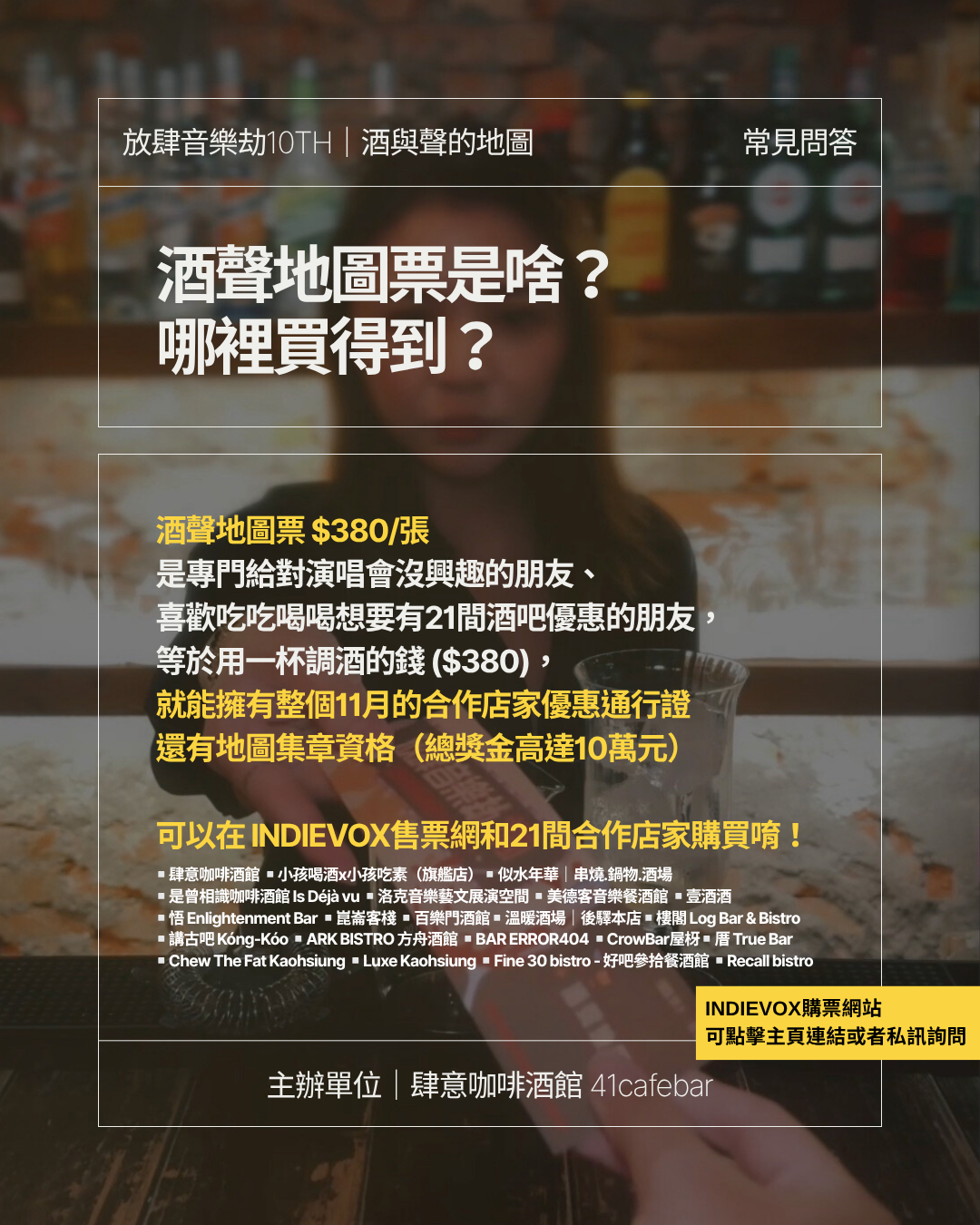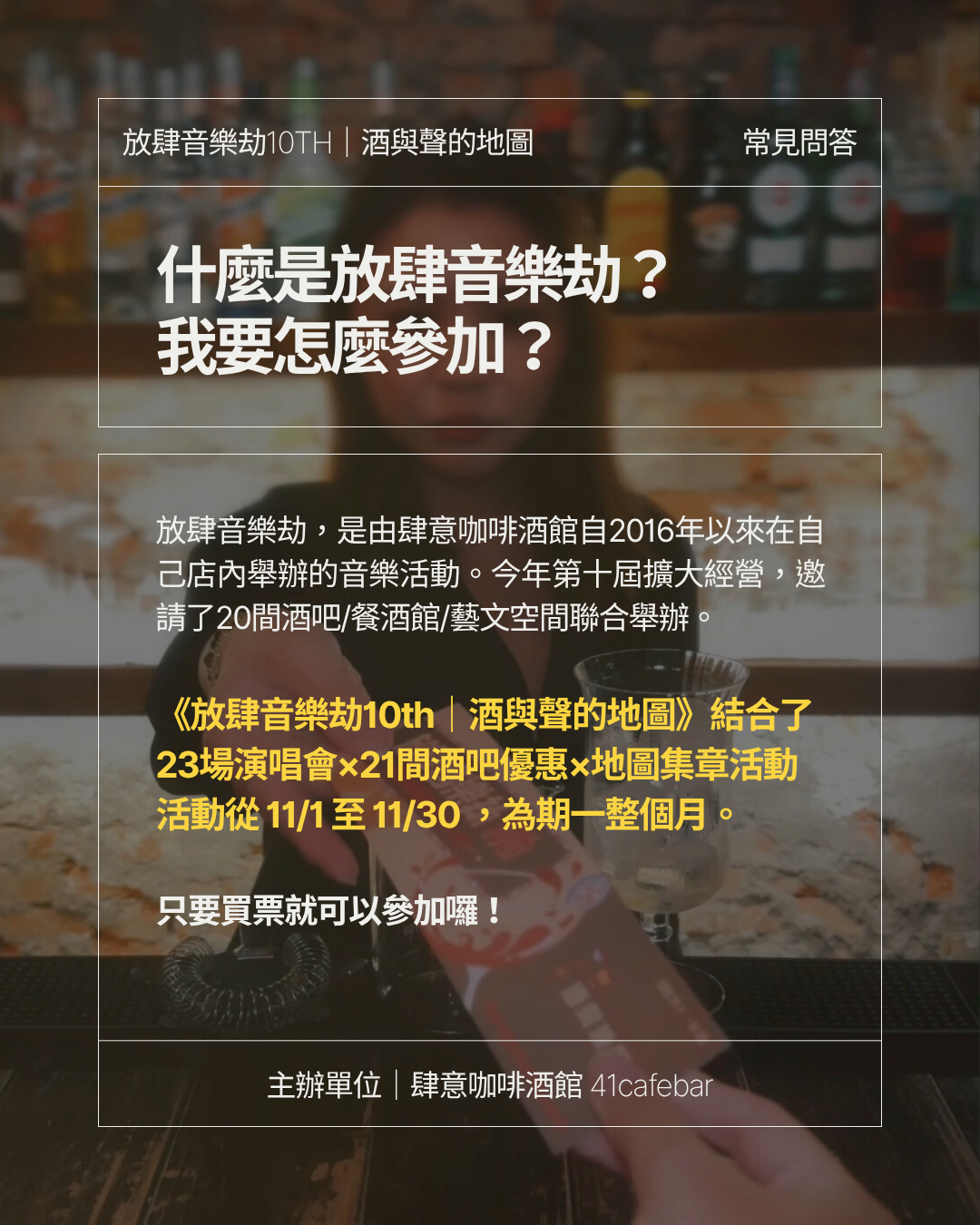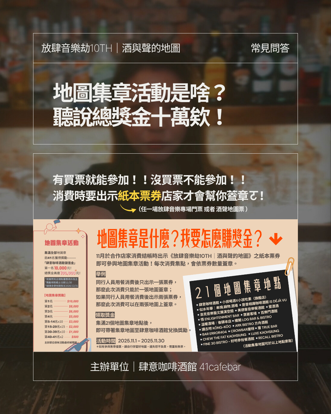 💬 主辦單位:肆意咖啡酒館 @41cafebar